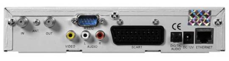 V ľavej časti je situovaná čítačka Smart kariet a vpravo potom už len senzor pre diaľkové ovládanie a kontrolné LEDky. Zadná časť obsahuje jednu scart zásuvku, AV výstup v podobe troch RCA konektorov vstup pre LNB a výstup pre ďalší satelitný prijímač, rozhranie pre komunikáciu s PC RS 232, optický digitálny audio výstup s podporou Dolby Digital a nakoniec 100 Mbit ethernetové rozhranie. Napájanie prístroja je riešené externým 12 V zdrojom, ktorý je samozrejme súčasťou výbavy a pripája sa do osobitého konektora v zadnej časti. Ovládanie a komunikáciu so zariadením má na starosti praktické a dizajnovo zaujímavo spracované diaľkové ovládanie.