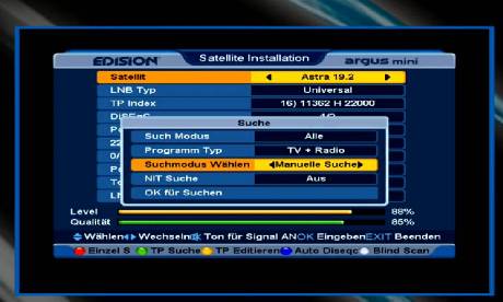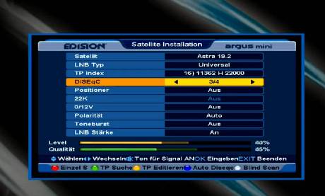 - DiSEqC 1,0, 1,1, 1,2 a USALS (LNB Ovládanie: 13/18V, 0/22K, 0/12V)