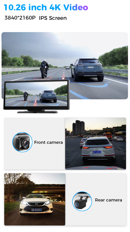 LCD IPS monitor na palubnú dosku s 10" palcovy dotykový monitor DVR kamerou 3840*2160P nahrávaním s pripojením zadnej cúvacej kamery.