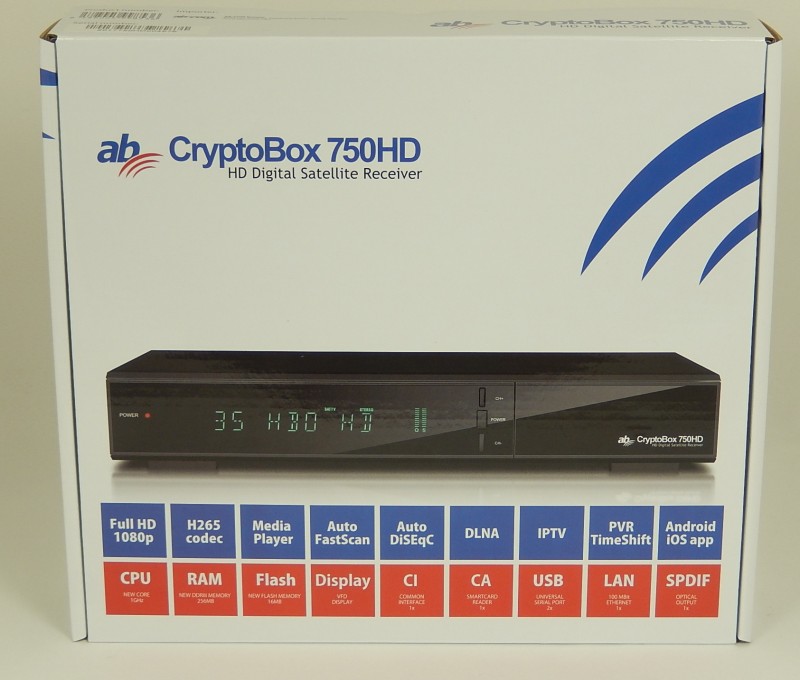 ový AB CryptoBox 750HD nástupca najúspešnejšej rady satelitných prijímačov AB CryptoBox 650. Kombinácia digitálneho satelitného prijímača a multimediálneho prehrávača v plnom Full HD 1080p rozlíšení. Možnosť sledovania HD programov, IPTV funkcia, pozeranie živého vysielania na Android zariadeniach, prehrávania multimediálneho videa, obrázkov a hudby.
