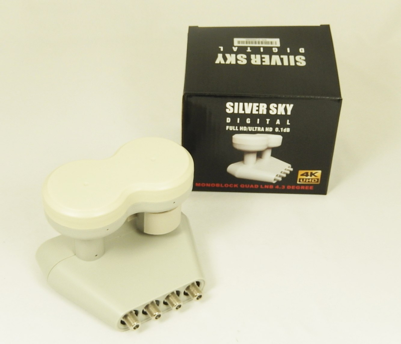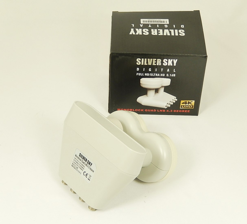 - LNB konvertor Monoblock Quad SILVER SKY 0,1 HD 4,3 stupna - 4K