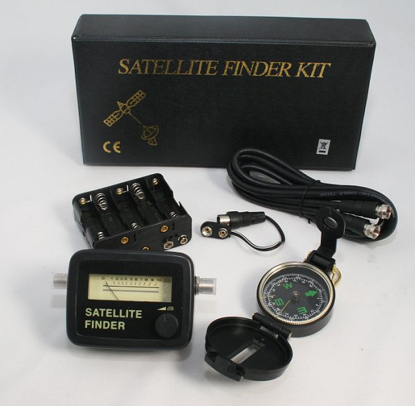 Set pozostava z ručičkoveho sat. finderu , kompasu , puzdra na baterky a kablu s F konektormi