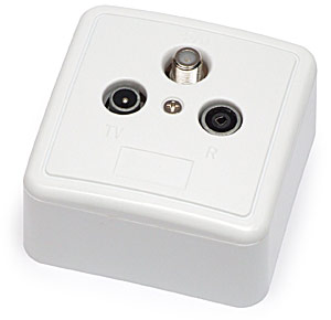 Univerzálna účastnícka zásuvka:SAT+ TV priebežna: Televízna/Satelitná zásuvka priebežna sa používa hlavne v inštaláciách s multiprepínačmi, ako koncová zásuvka pre prijímač účastníka. Je vhodná pre systémy, kde sú všetky signály (FM, TV, SAT TV) prenášané cez jeden koaxiálny kábel. Zásuvka je vybavená filtrami, ktoré oddeľujú signál pozemnej TV (aj FM) od signálu satelitného