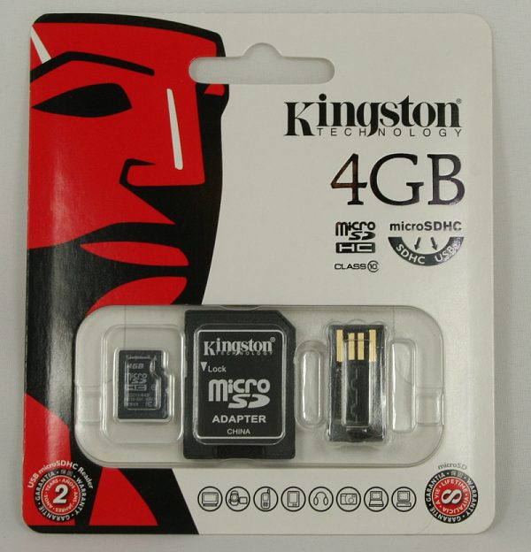 - Kingston Micro SDHC 4GB Class 10+2x adapter