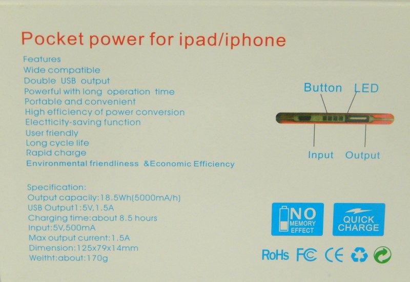 Solarna nabijačka sa vyznacuje svojou lahkostou -vaha len 170 g , cela ukryta v hliníkovom obale s dvoma USB konektormi , jeden vstup a druhy vystup na nabijanie . Idealne pred Iphone , Ipad, Samsung, HTC, Nokia.....