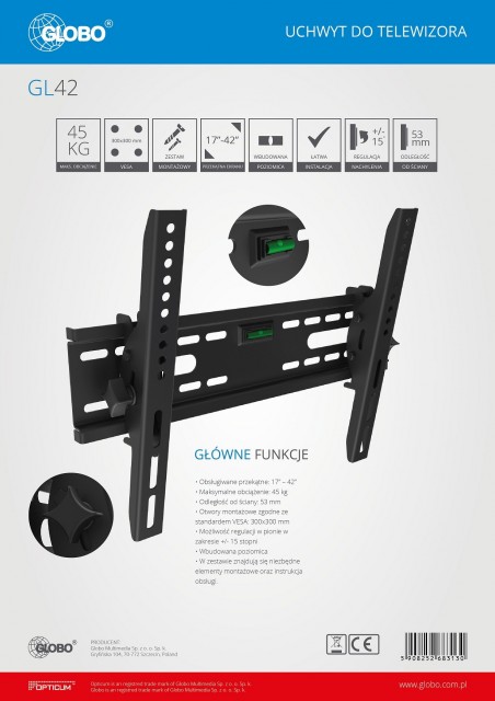 Konzola stenova na LCD Globo 17" - 42" z max zatažením 45 kg
