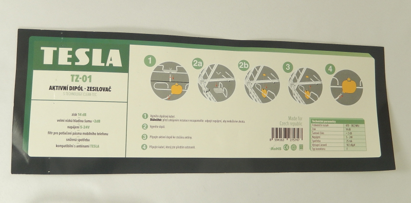 Aktívny dipól TESLA - zisk 14dB 5-24V
