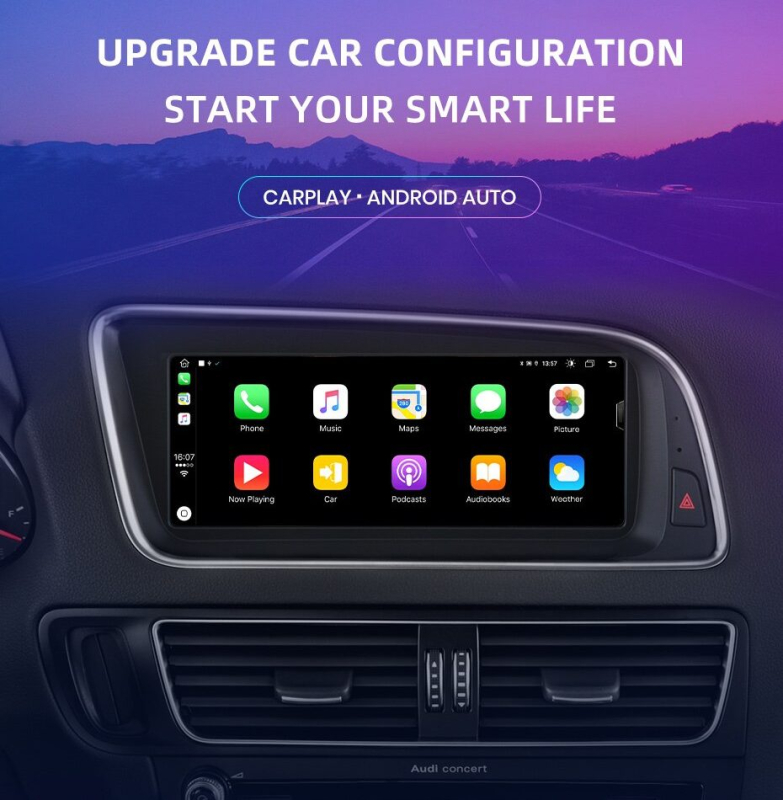 Multimediálne radio Audi Q5 GPS Android 12 system s Octo core procesorom pre rok výroby 2009-2017 s velkým 8,8" LCD s IPS , pôvodné rádio zostava mení sa len velký LCD s Android systémom ktorý podporuje pripojenie cúvacej kamery, zabudovaná navigácia GPS , Wifi a 2x USB.Mapy GRATIS