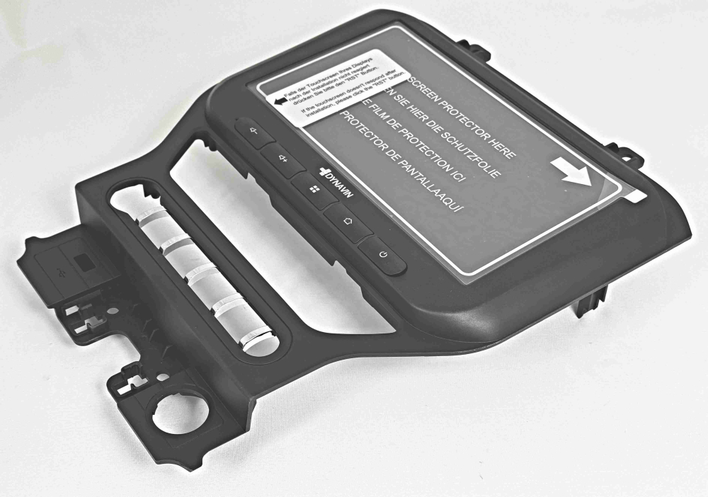 Dynavin Mustang Radio si zachováva pôvodné tlačidlá HVAC a funkcie vodiča.