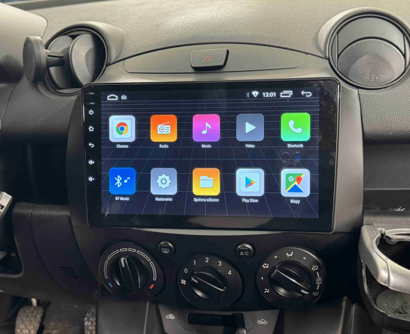 Android rádio Mazda 2 pre ročníky 2007-2014 dotykovým 9" displejom s vysokým rozlišením a systémom ANDROID 12 + mapy Gratis .