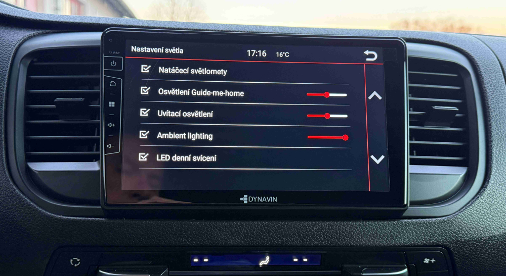 Nastavenie auta v menu radia -nastavenie osvetlenia-nastavenie volantu - nastavenie pneu a dalšie.