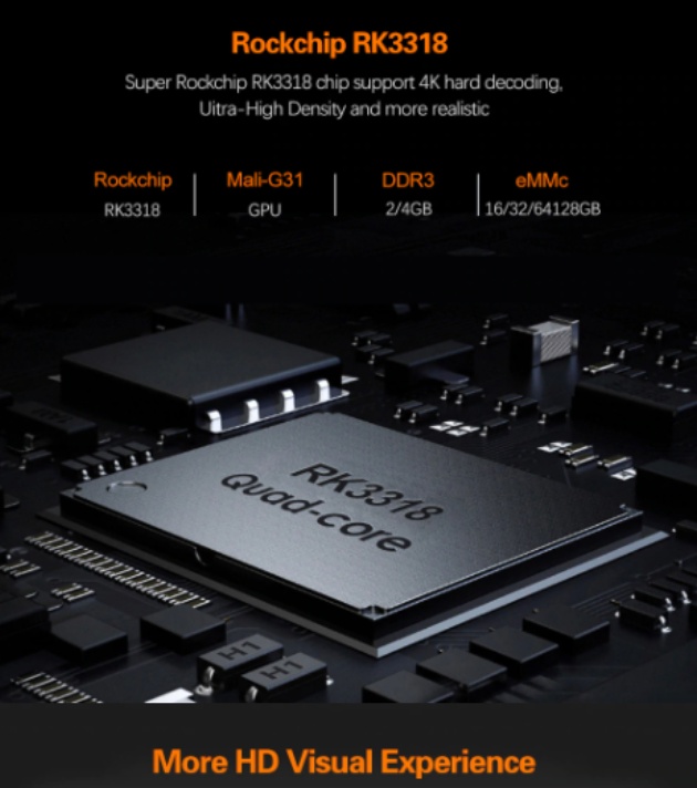 ● CPU RK 3318 Quad-Core 64bit Cortex-A53