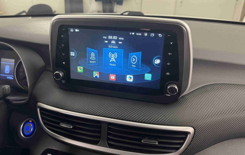 Multimediálne rádio pre modely Hyundai Tucson 2018 -2021 s OCTO CORE 8 jadrovým procesor PX6 a 4/64 GB a dotykovým 10" displejom a systémom ANDROID 15 pre vozidlá Hyundai.