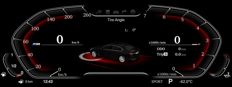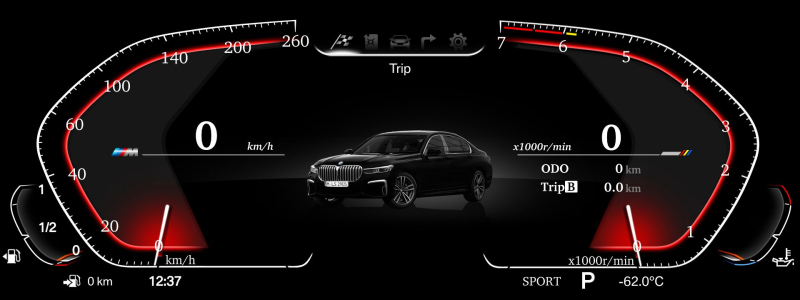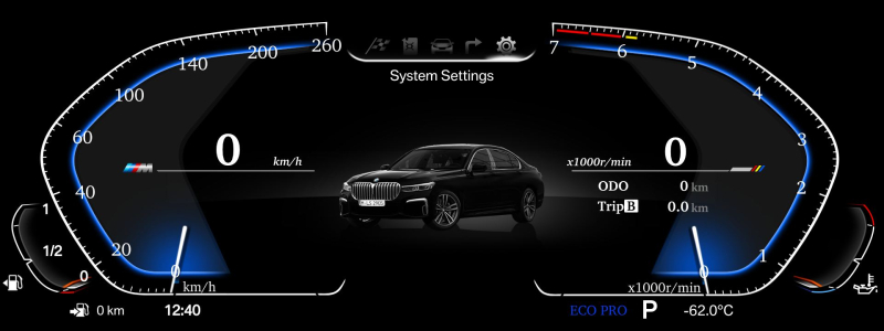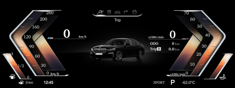 BMW digitálnyotáčkomer- kokpit pre 5-6-7 seriu áut BMW. Vysoké rozlíšenie displeja zaručuje jasnú čitatelnost 1920x720.