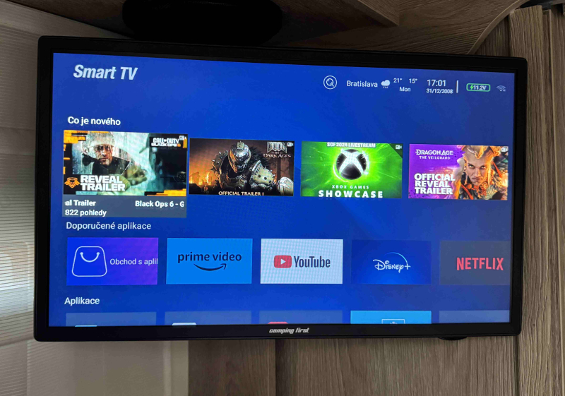 Smart TV Camping First beží na modernom operačnom systéme Android 11.0 a poskytuje prístup k mnohým predinštalovaným aplikáciám a mediálnym portálom. Vďaka rozhraniu WLAN a LAN je možné flexibilné pripojenie k internetu.