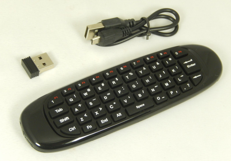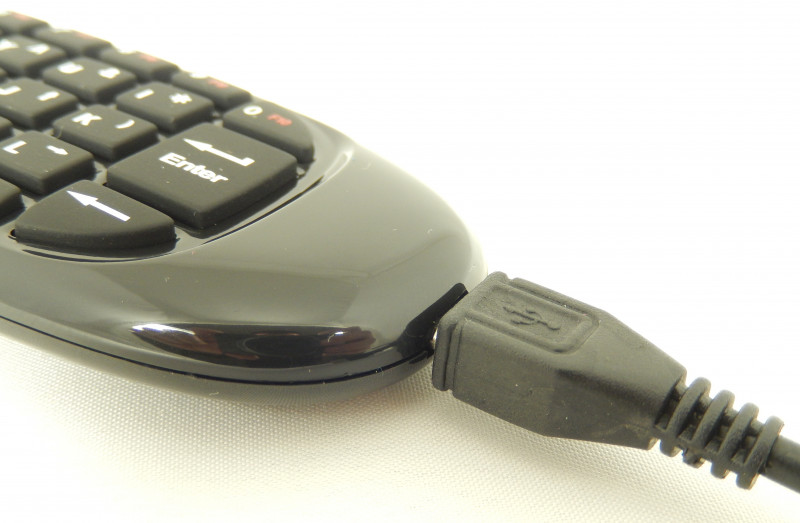 Dialkové ovladanie Airmouse OPENBOX s QWERTY klávesnicou , dialkový ovladač ma vlastnu bateriu a nabija sa pomocou priloženeho USB kablu.
