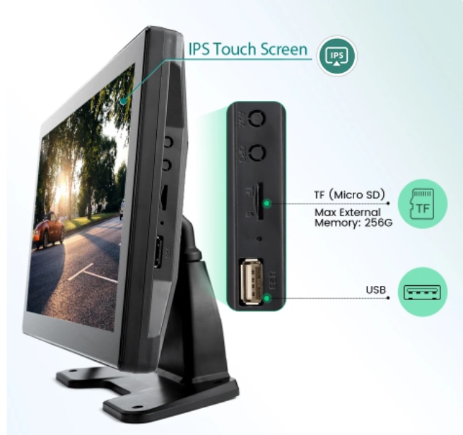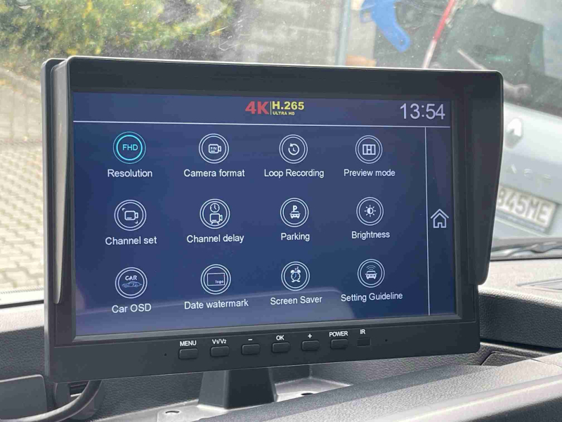 Monitor vybavený dotykovým displejom. Monitor umožňuje prepínanie rôznych variant zobrazenia kamier 2 alebo 4 , podľa toho koľko kamier máte pripojených a ktoré chcete, aby sa zobrazovali ako hlavné. Ked 2x kliknete na danú kameru obraz budete mať na celej obrazovke.