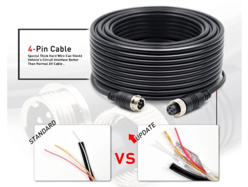 K monitoru je možete pripojiť až 4 AHD kamery Sony čip. Kamery sú pripojené na monitor cez 4pin tienený kábel 10m je v balení dľžku je možné objednať aj - 15m a 20m.