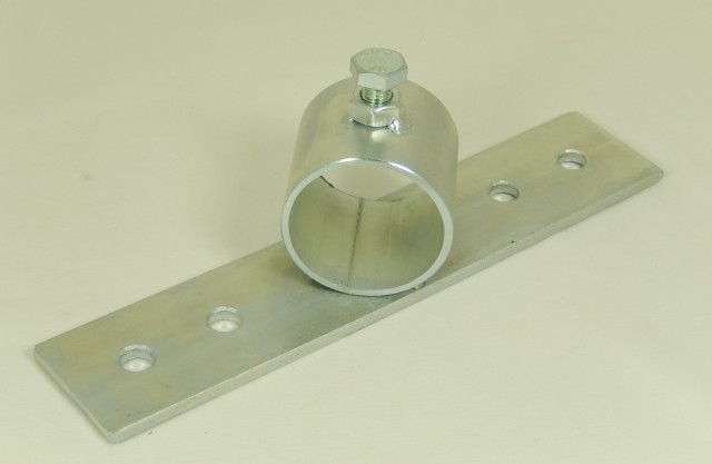 Držiak stožiaru na krov pre 48mm trubku pod uhlom 45°, Hrúbka pásoviny 4mm a dlžka pasoviny 240mm, zaistenie tyče jednou maticou . Pozinkované prevedenie.