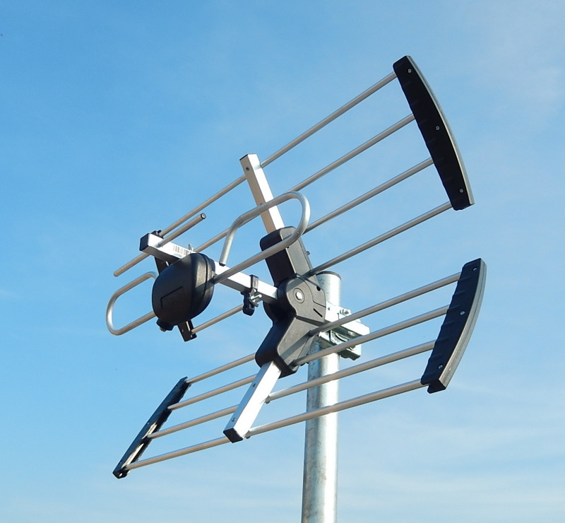.Profesionalna UHF Triple anténa pre príjem DVB-T2 vysielania s vysokým ziskom so symetrizatorom .