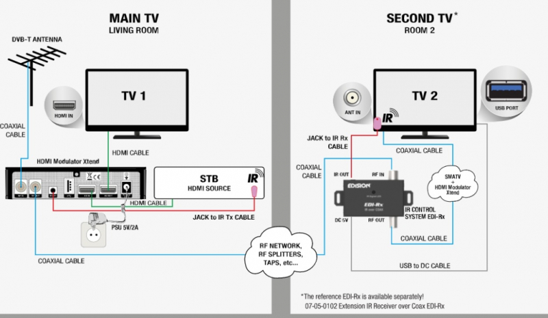 - As an extra and optional accessory, an IR CONTROL over COAX system can be connected (EDI-Rx/Tx)