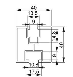 FVE hliníkový AL profil H 40x40, dĺžka 2200mm pre M10 šesťhrannú hlavu