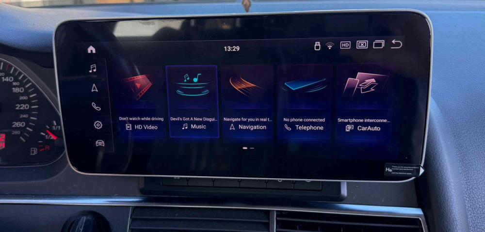 – Duálny systém, OEM a Android, voľné prepínanie a podpora originálnych funkcií, ako napríklad informačný displej o vozidle, parkovací systém, originálna cúvacia kamera, rádio, GPS navigácia, Bluetooth, USB atď.