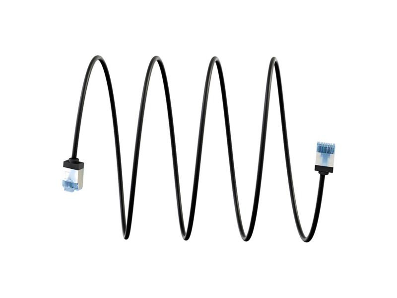 Samostatná kategória: Supertenké káble CAT s extra krátkymi konektormi drasticky znižujú objem materiálu v serverových skriniach a patch paneloch – pre výrazne lepšiu cirkuláciu vzduchu a menej hromadenia tepla ako pri konvenčnej kabeláži. Navyše mäkký TPE plášť a tenké medené vodiče poskytujú špeciálnu flexibilitu a materiálovú efektivitu, vďaka ktorým je táto generácia káblov perfektným sieťovým partnerom.