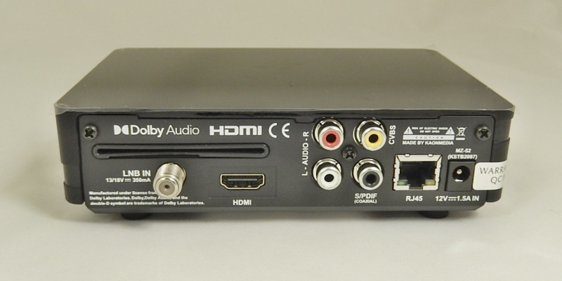 Množstvo konektorov – K prepojeniu TV možno využiť konektory HDMI a CVBS+ Analog L/R. Nechýba samozrejme vstup pre koaxiálny kábel, napájací adaptér, RJ45 ani koaxiálny zvukový výstup.