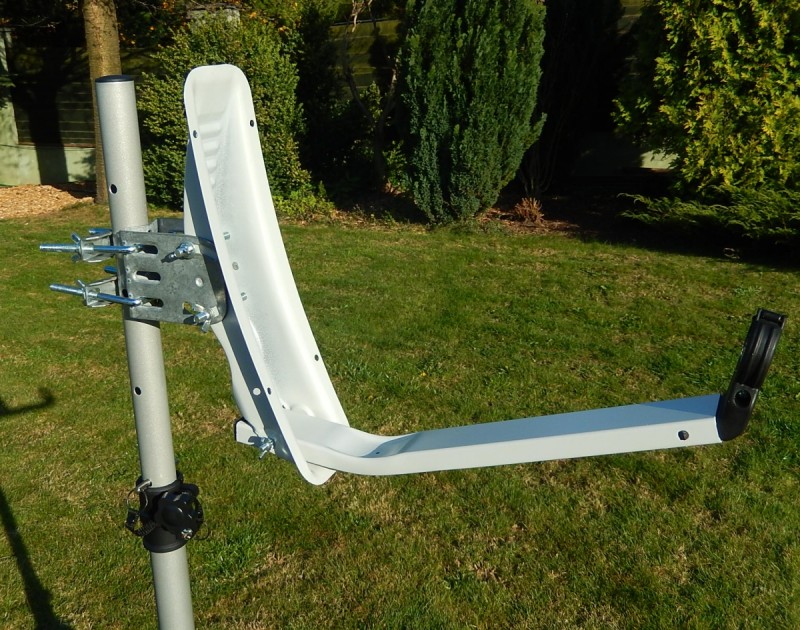 Komplet obsahuje kvalitnu ľahkú AL hliníkovú parabolu TRIAX 65 cm ktoru velmi rychlo zložite vdaka vyklopnemu ramenu na ktore umiestnite konvertor LNB zo zabudovanym