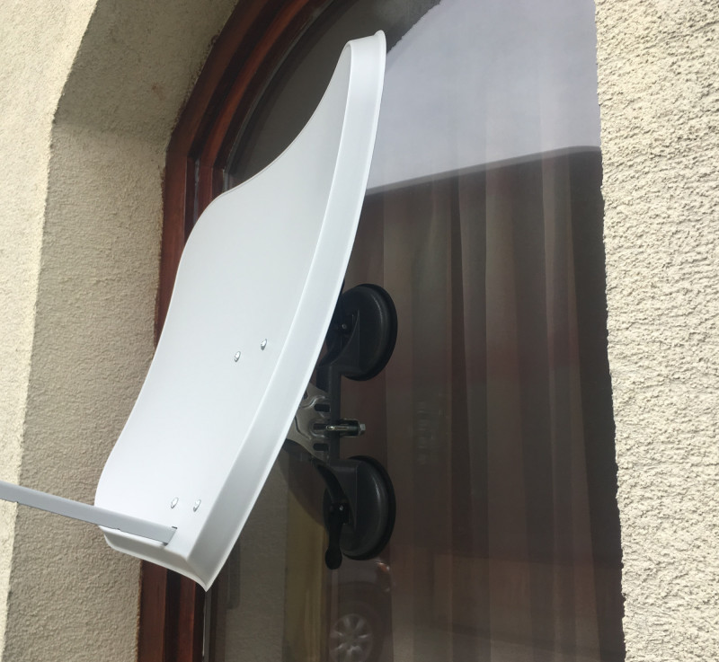 Lahká instalacia na rovnú stenu okna , alebo kabíny auta , Stači len prisat prísavku a namontovat parabolu vyhladat smer a možte sledovat Vaše oblúbene programy.