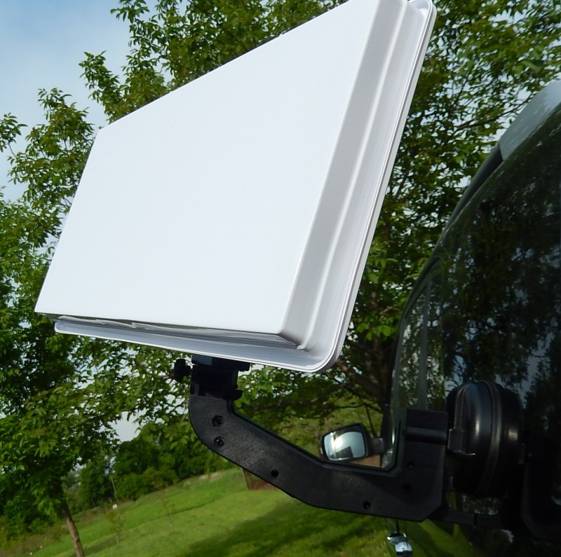 Satelitný komplet pre karavany, kamiony s plochou parabolou a s technológiou EasyFind II pre lepšie nastavenie paraboly so satelitným prijímačom Amico Impulse HD.