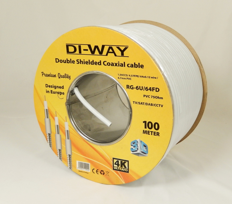 Koaxiálny kábel DI-WAY RG-6U- 6,7mm - 100m cievka