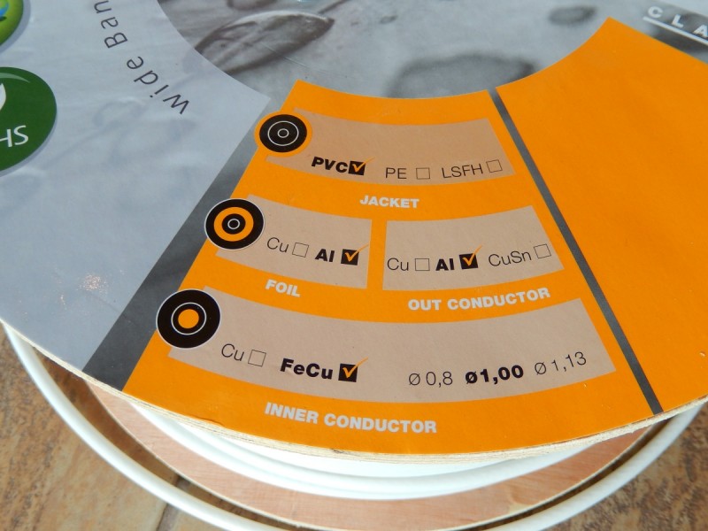 - Vnútorný vodič (mm) 1, CCS, Resist. (O / Km) <120