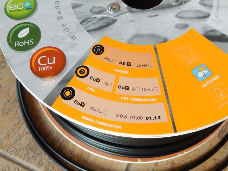 Celomedeny koaxialny kabel s malymi stratami do zeme aj vonkajšie použitie.