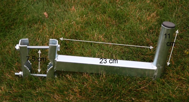 Konzola mala horizontalna s uchytom na horizontalnu tyč, zo žralokom o dĺžke 23 cm od uchytu na rozne male zariadenia ako WIFI anteny a pod.