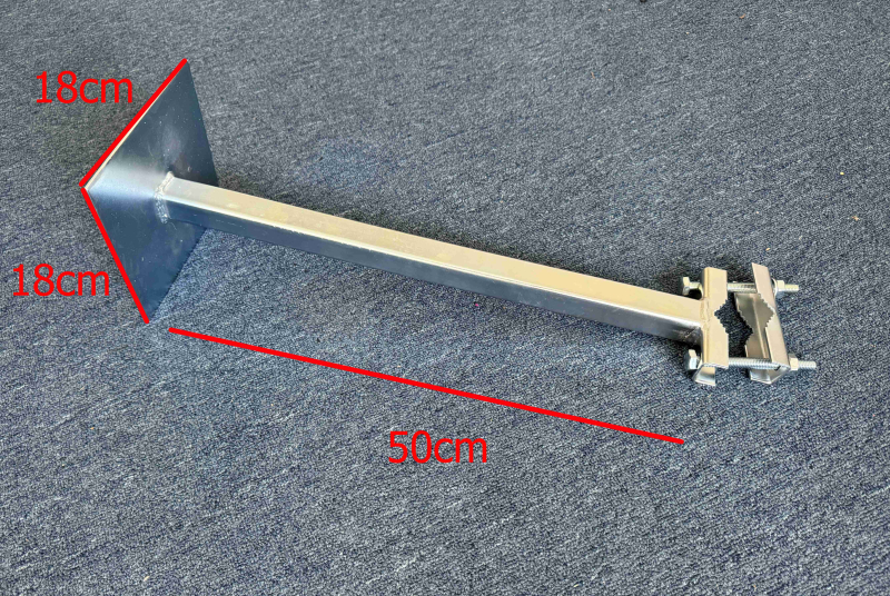 Konzola na stožiar pre uchytenie kamery alebo WiFi zariadení s kolmou platňou - odskok od steny 50 cm a rozmer platne 18x18 cm na ktorú možte upevniť vaše zariadenia.