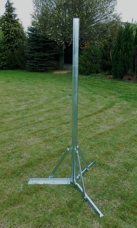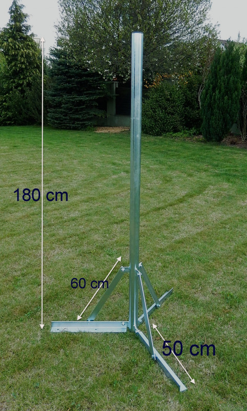 Konzola na plochú strechu pevná 6cm trubka a výška 180cm, bočné nohy su 50 cm , konzola je v rozloženom stave , montáž je priloženými skrutkami