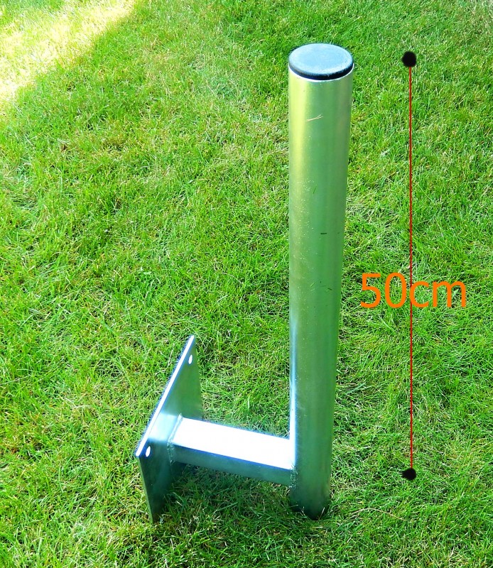 Konzola vikierová dľžka tyče 50 cm , odskok od steny 14 cm , velkost platne 18x18 cm , rozteč dier 14x14 cm , priemer tyče 48mm, pozinkovana.
