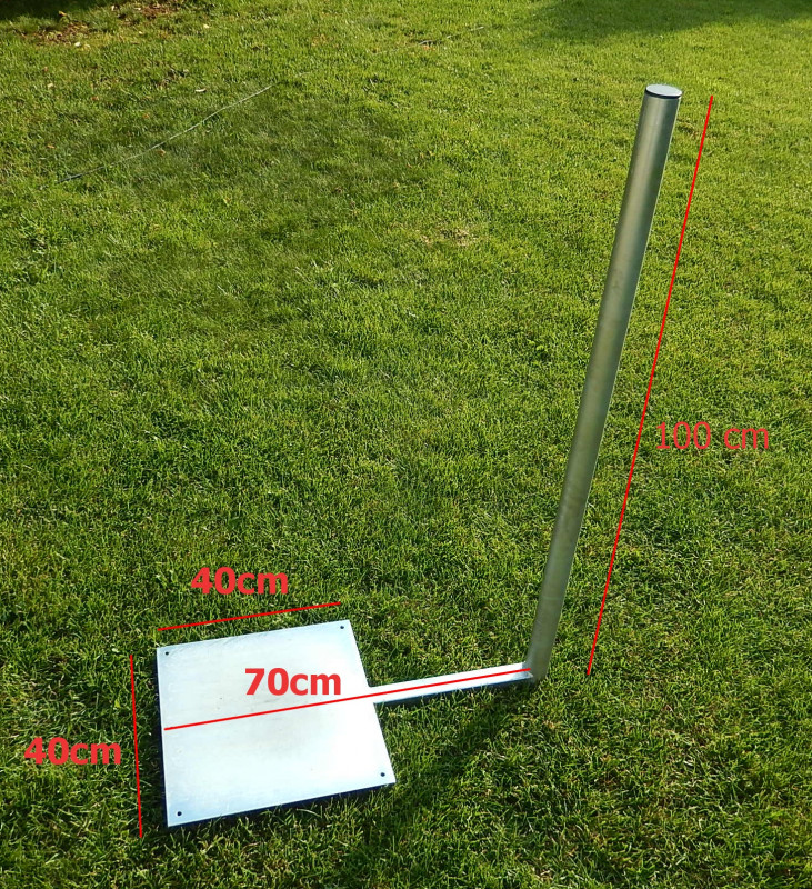 Špecialna konzola vikierova dľžka tyče 100 cm , odskok od steny 70 cm , velkost platne 40x40 cm , priemer tyče 48mm, pozinkovana.Pokial potrebujete iny rozmer tak vam ho radi vyrobime.