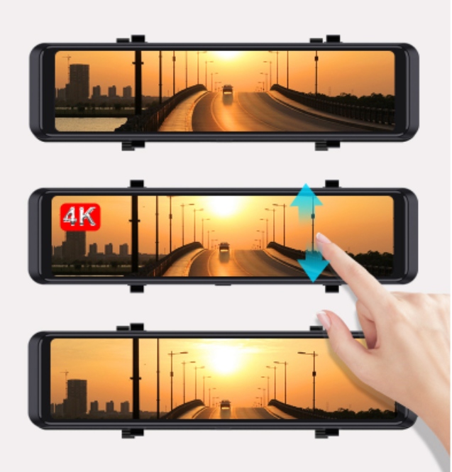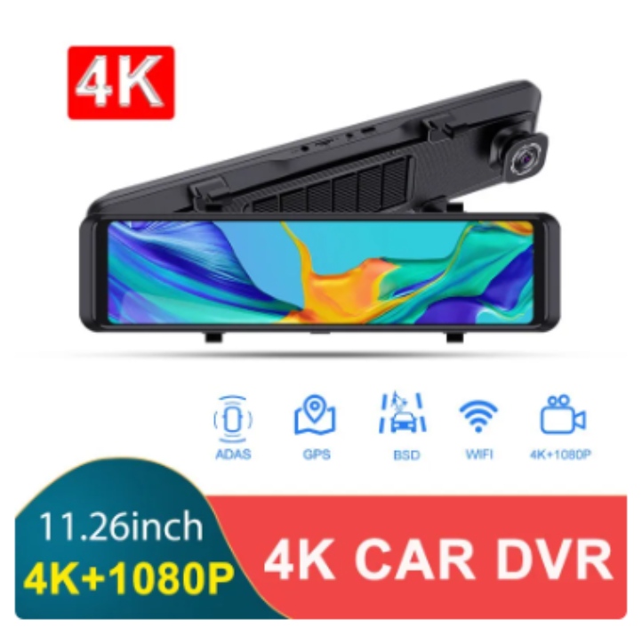 LCD zrkadlo 11,26" palcovy dotykový monitor na spätné zrkadlo s 4K DVR kamerou 3840*2160 nahrávaním s pripojením zadnej cúvacej kamery.
