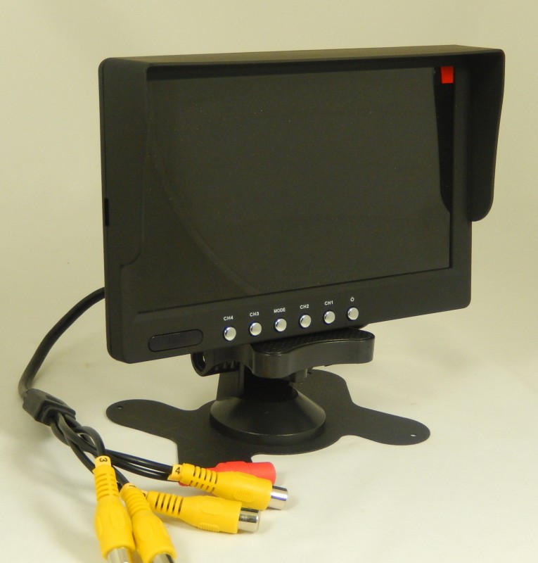 Veľký 7" LCD monitor má všestranné využitie, obzvlášť vhodný do automobilu pre prepojenie s cúvacou kamerou. Vďaka 4x VIDEO vstupom sa dá zároveň použiť aj z externých AV zdrojov , kamier, HDD. napajanie 9-35V