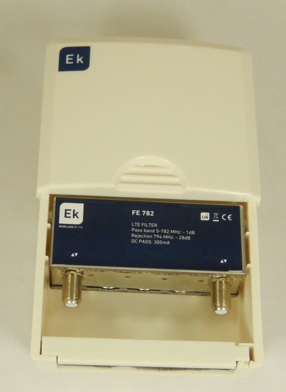 Vysoko útlumový a selektívny LTE filter pre vonkajšiu inštaláciu. Priepustné pásmo 5-782 MHz. Útlum: >19dB (791 MHz)/ >28dB (796 MHz) / >40dB (>804 MHz). Priechodzí útlum <1dB (<760MHz)/<1,6dB (<772MHz). Priechodzí pre napájecie napetie pre predzosilovače.