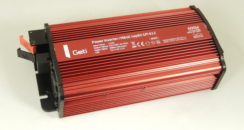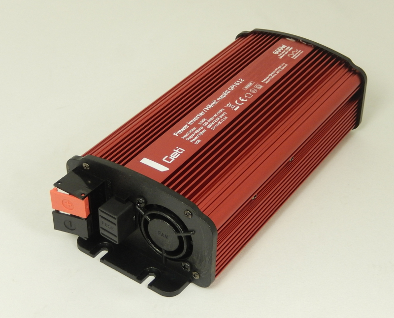 Menič napätia Geti GPI 612 12V/230V - 600W Invertor - Menič vytvára z jednosmerného napätia 12V striedavé napätie 230V. To umožňuje pripojenie najrôznejších spotrebičov 230 V k zdroju napätia ako napr. v aute, na člne, u solárnych zariadení na chatách alebo pri kempovaní.