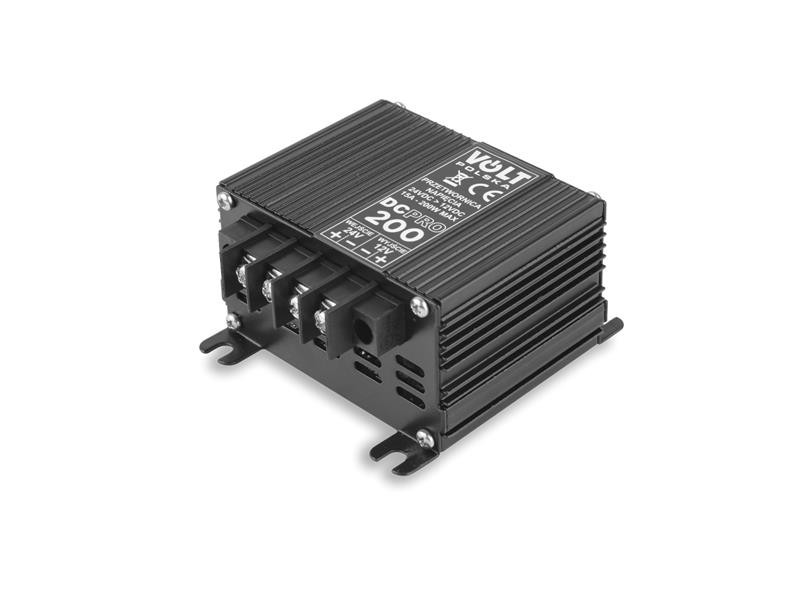 Menič napätia VOLT DC Pro 200 24/12V 15A je moderné a bezporuchové zariadenie určené na zníženie napätia autoinštalácií z 24V na 12V. Prevodník sa vyznačuje veľmi nízkou úrovňou rušenia, veľmi stabilným výstupným napätím a radom prepäťových ochrán, vďaka čomu je ideálny pre napájanie rôznych typov autoprijímačov, napr. autochladničiek.