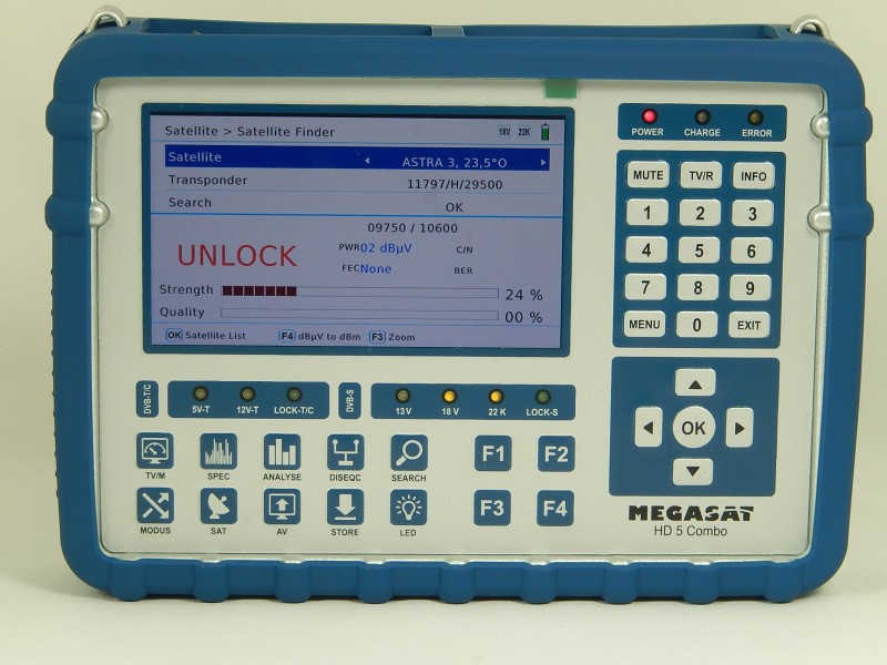 Pomocou satelitného merača HD 5 Combo je možné merať všetky TV signály. Poskytuje presné merania satelitnej, káblovej a pozemnej televízie (vrátane DVB-T2 HD).