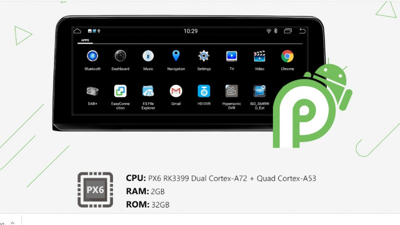 Najnovší systém Android 9.0 s procesorom PX6 Hexa-Core, 2G RAM a 32G ROM.