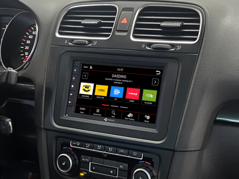 FM RDS TMC tuner s DSP maskovaním šumu a 15 predvolenými stanicami, vstavaný DAB. Podporuje automatické prepínanie medzi DAB a FM (plynulé prelínanie).