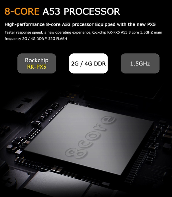 Procesor CPU : Rockchip PX5 A53 Octa-Cores 1.5GHz*8
