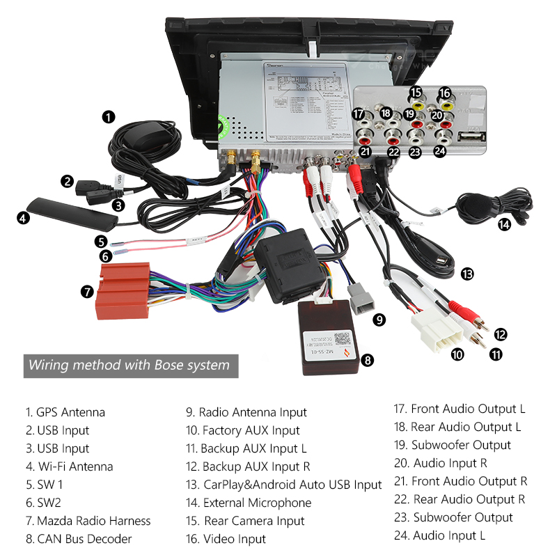 Špecialny model radia pre MAZDA 6 s aktívnym systemom audio BOSE , radio je s OCTO CORE 8-jadrovy procesorom Rockchip PX5 A55 Octa-Core 1.8GHz*8 - RAM: DDR3 2GB RAM Ivnútorna pamat 32GB EMMC ROM .Autorádio ma Slovenske a ceske menu je vybavené GPS, bluetooth handsfree sadou,zabudovanym WEB prehliadačom , Wi-Fi pripojenim, Autorádio je postavené na systéme Android 11 s prehľadným Android grafickým menu.